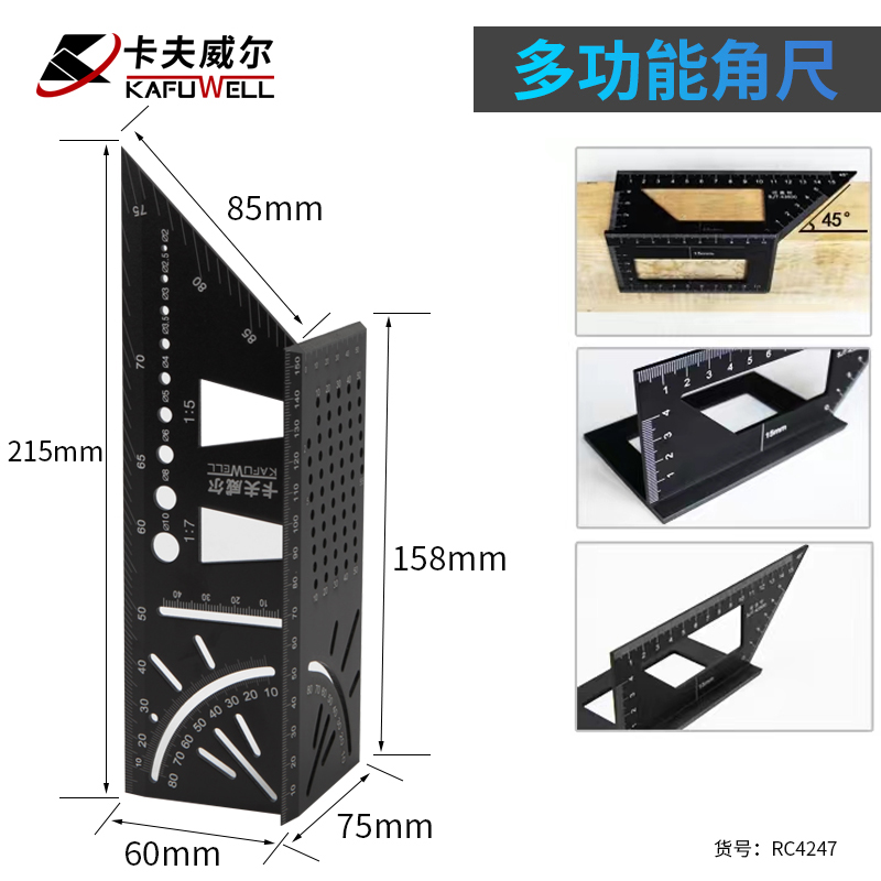 Kafwell Steel Straight Rainless Steel Rider L-shaped Straight-horned Carpentry Drawing Score Derm Triangle