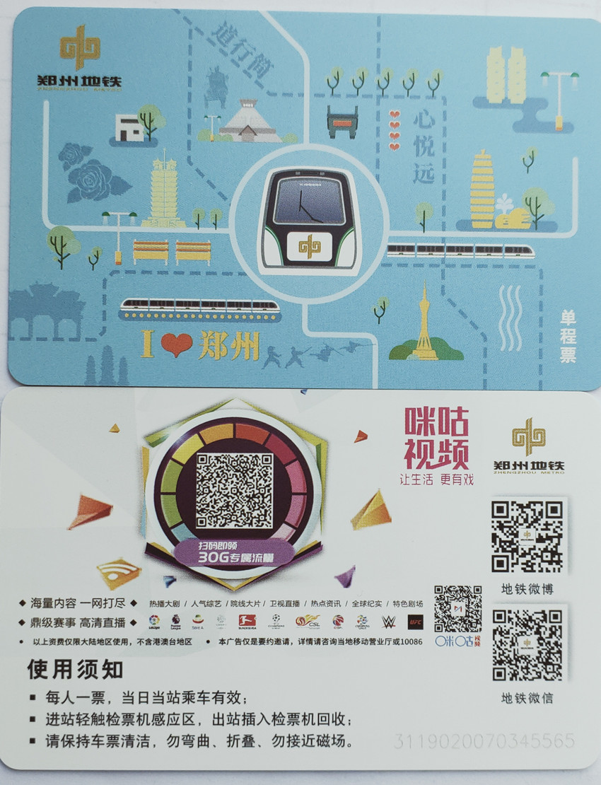 Zhengzhou Metro One Way Card