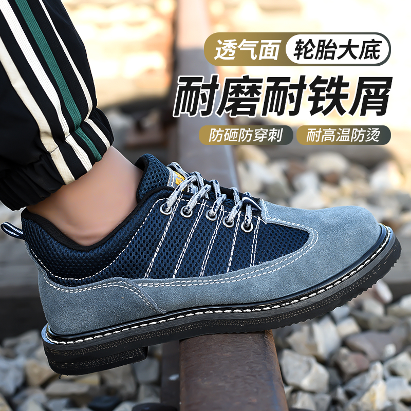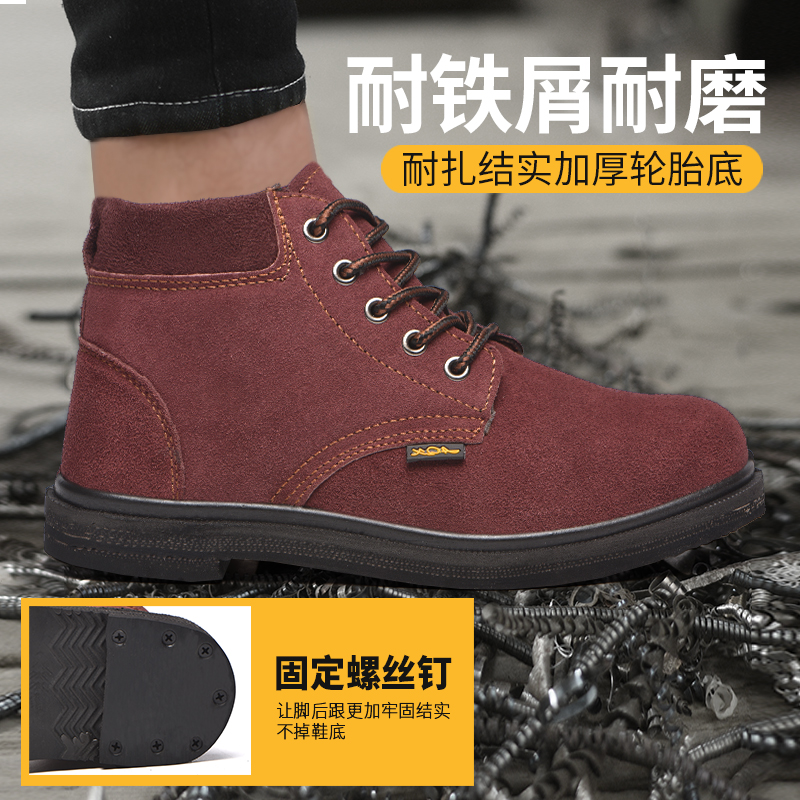Lau-preserved shoes male steel-wrapped tire bottom anti-smash anti-piercing work shoes lightly wear cowhide safety shoes electric welding shoes