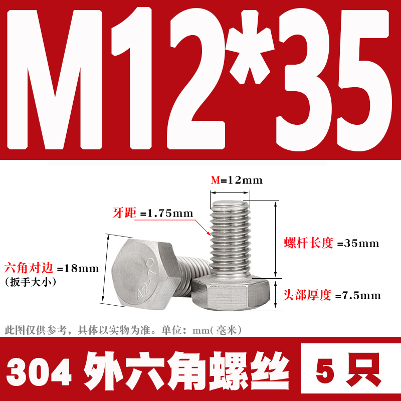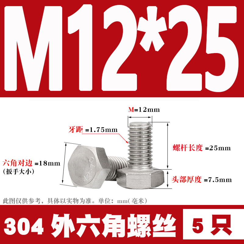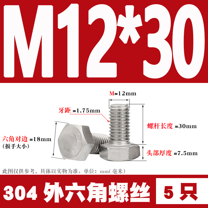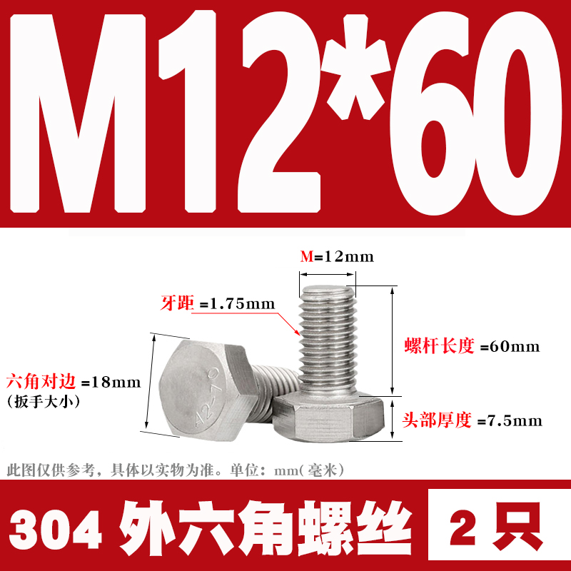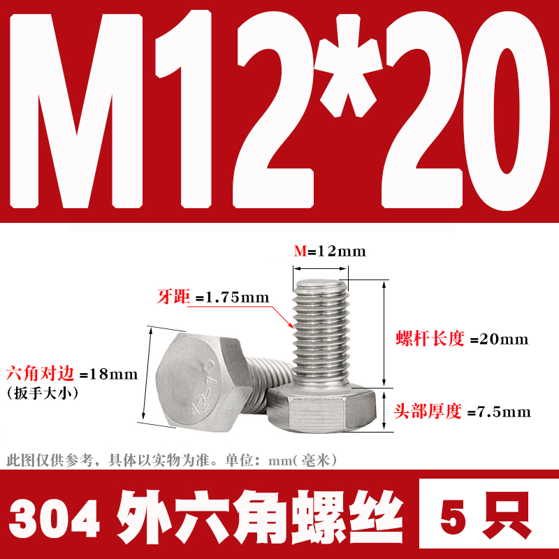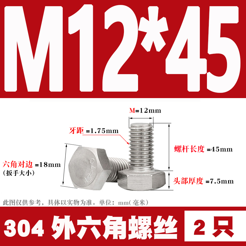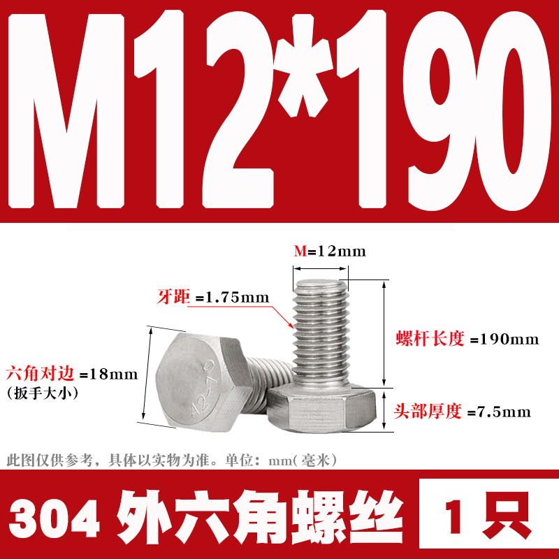 12mm 304 Stainless Steel External Hex Screws External Hex Bolts M12 * 25 30 35 40 60 80-12012mm 304 Stainless Steel External Hex Screws External Hex Bolts M12 * 25 30 35 40 60 80-120Provide 12mm 304 Stainless Steel External Hex Screws External Hex Bolts M12 * 25 30 35 40 60 80-120 by 天阳五金天阳五金 at Hanning-Trading .com. Product #: 354275836144.69天阳五金In stock
