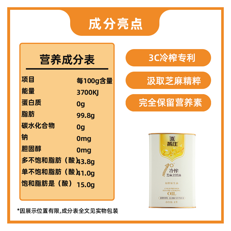Yanzhuang cold pressed sesame oil 1L cooking oil high-end cooking oil sesame oil stir-fry - TaobaoYanzhuang cold pressed sesame oil 1L cooking oil high-end cooking oil sesame oil stir-fry - TaobaoProvide Yanzhuang cold pressed sesame oil 1L cooking oil high-end cooking oil sesame oil stir-fry - Taobao by at Hanning-Trading .com. Product #: 3696575203556.67In stock