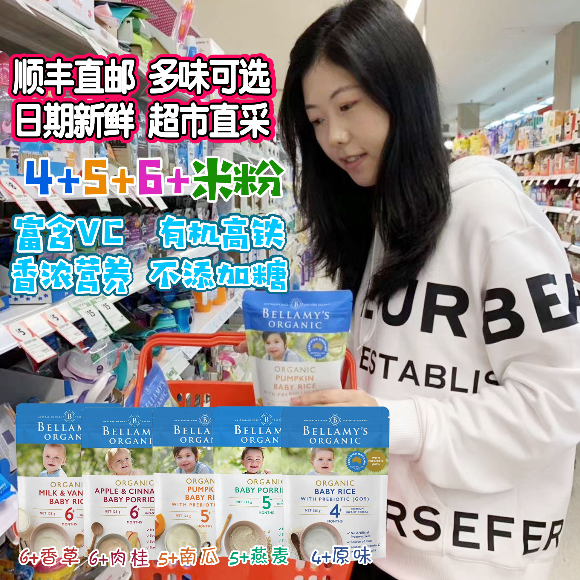 bellamys baby rice noodles baby complementary breakfast nutritious cereal original rice high-speed rail 4 months Zoom