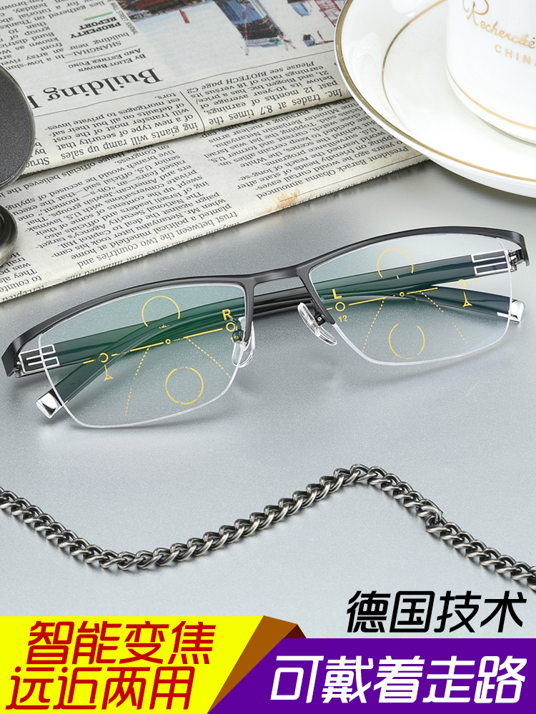 progressive multifocal reading glasses men's dual use smart zoom dual light myopia long vision color changing reading glasses