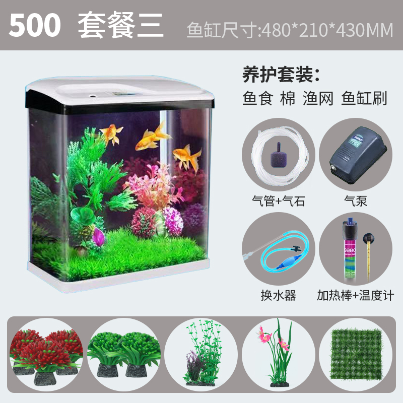 Small-scale fish tank in Songbao, aquarium chamber, home-made scenery, ultra-white glass fish tank, small ecological desktop goldfish tank