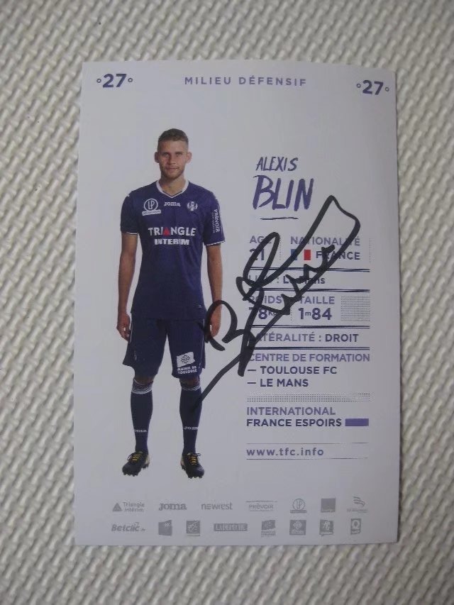 Blanc Alexis Blin French Armor Toulouse Club Official Autograph Card