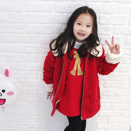 Baby baby boy's dress customization winter Christmas red wave floral floral hair medium long coat baby
