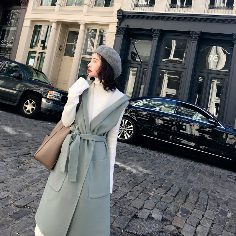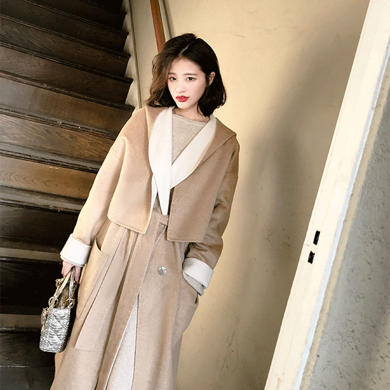 Daji self-made autumn woman suit 2022 new hooded vest double-faced hair two sets of goddess suit autumn tideZoom