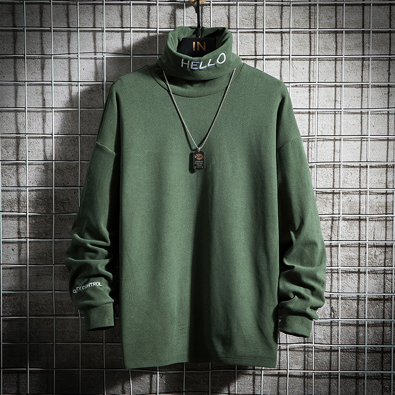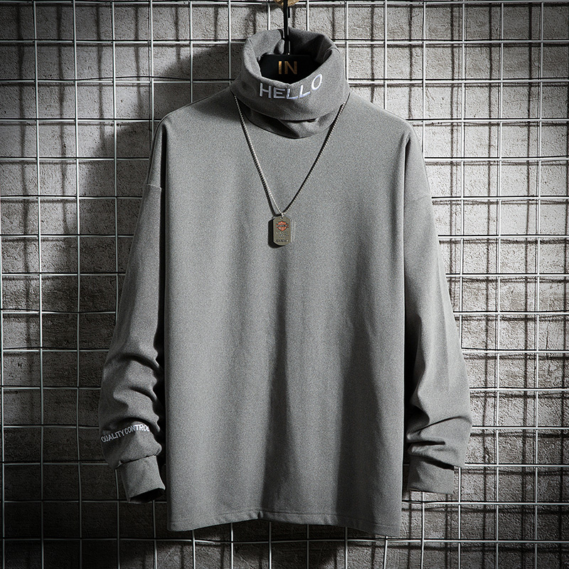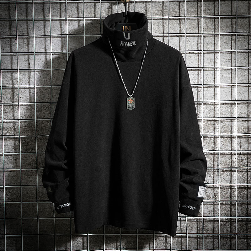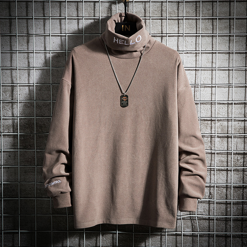 men's premium explosive street men's loose turtleneck embroidered coat with black trench coat underwear long sleeve clothes autumn - Taobao