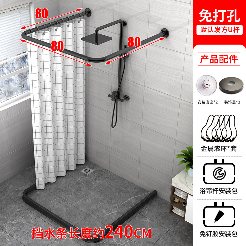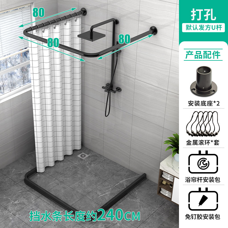 U-shaped shower curtain suit bathroom water blocking bathroom shower cut-off curtain waterproof avoidance punching polyester magnetic curtain
