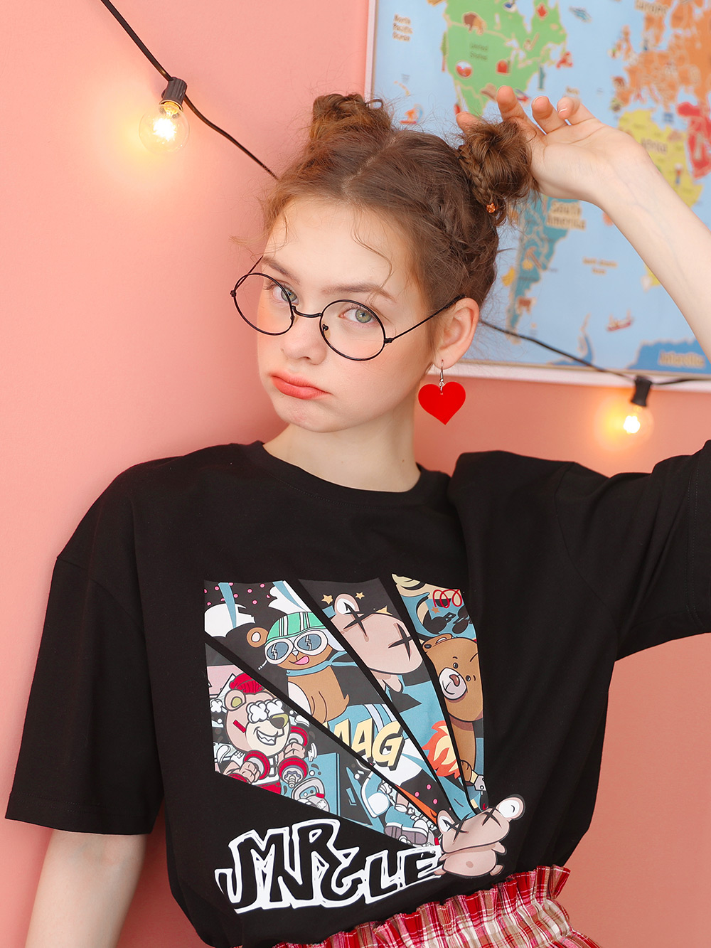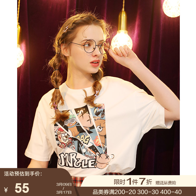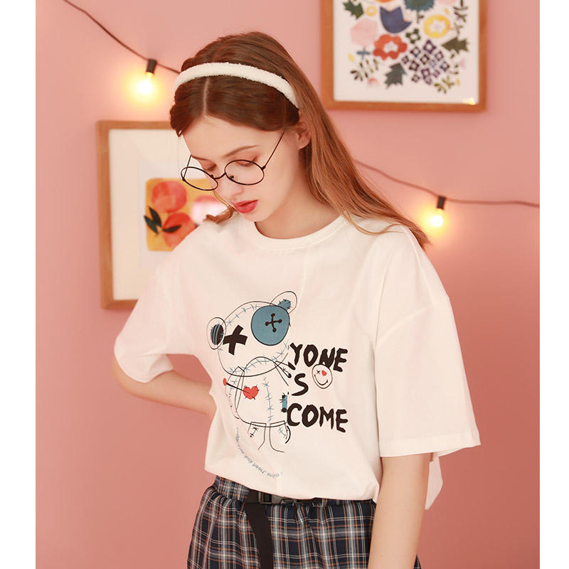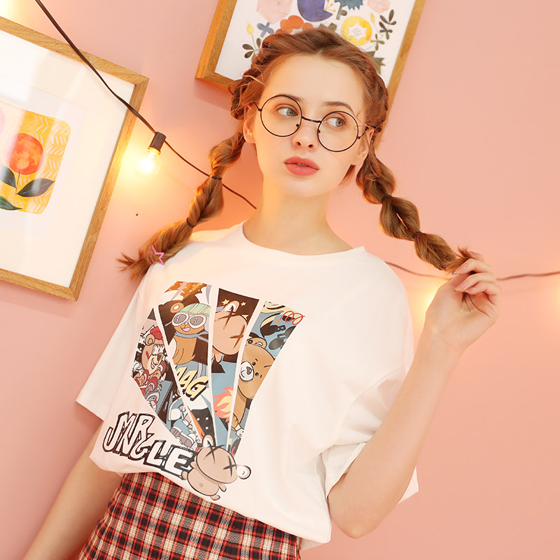 Kuenmawi 2023 year printing short-sleeved summer T-shirt cute short casual couple blouse T-shirtZoom