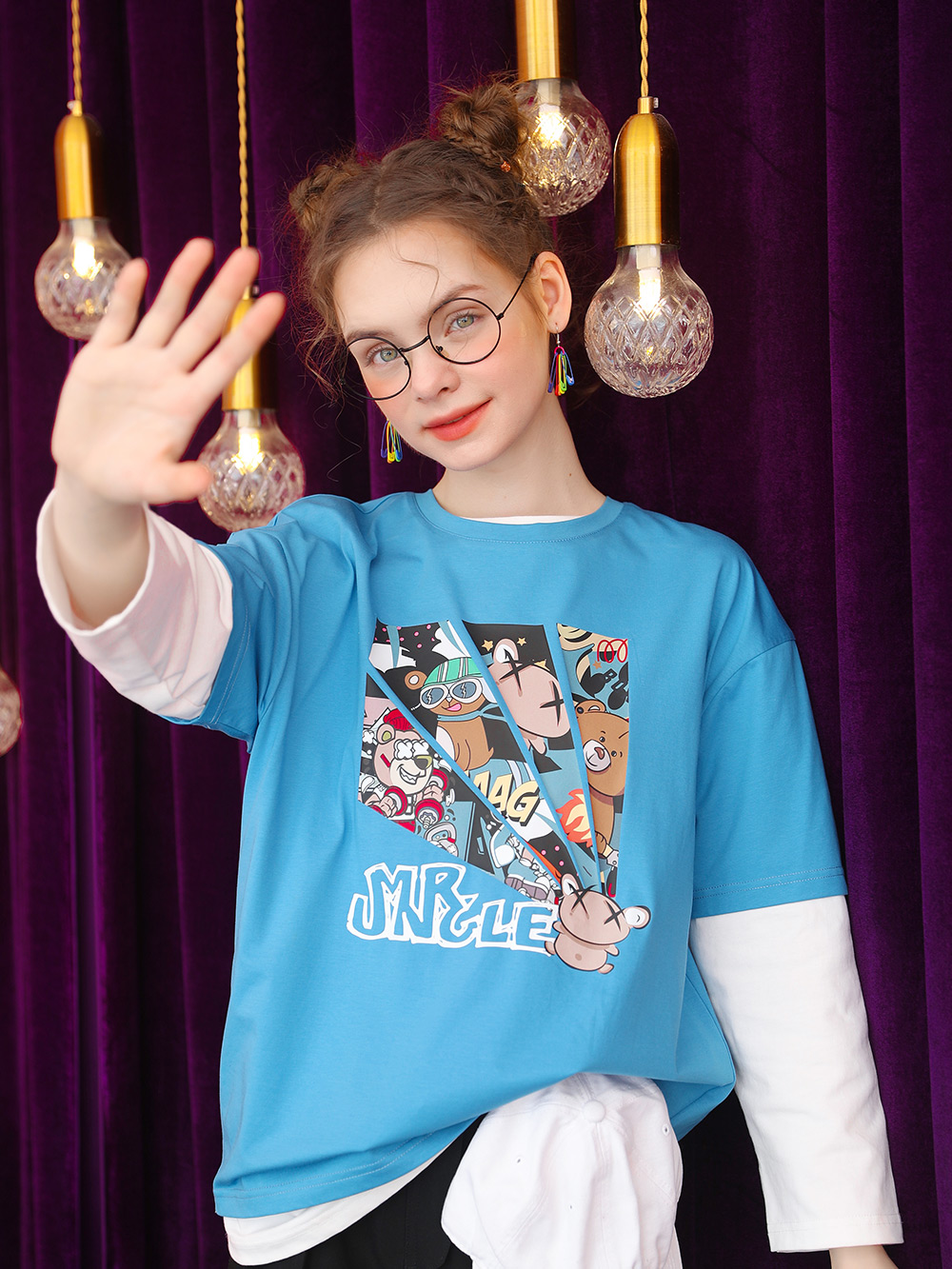 Kuenmawi 2023 year printing short-sleeved summer T-shirt cute short casual couple blouse T-shirt