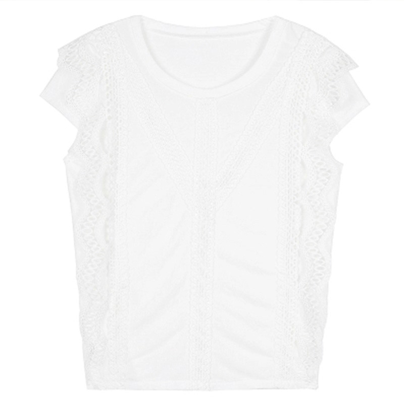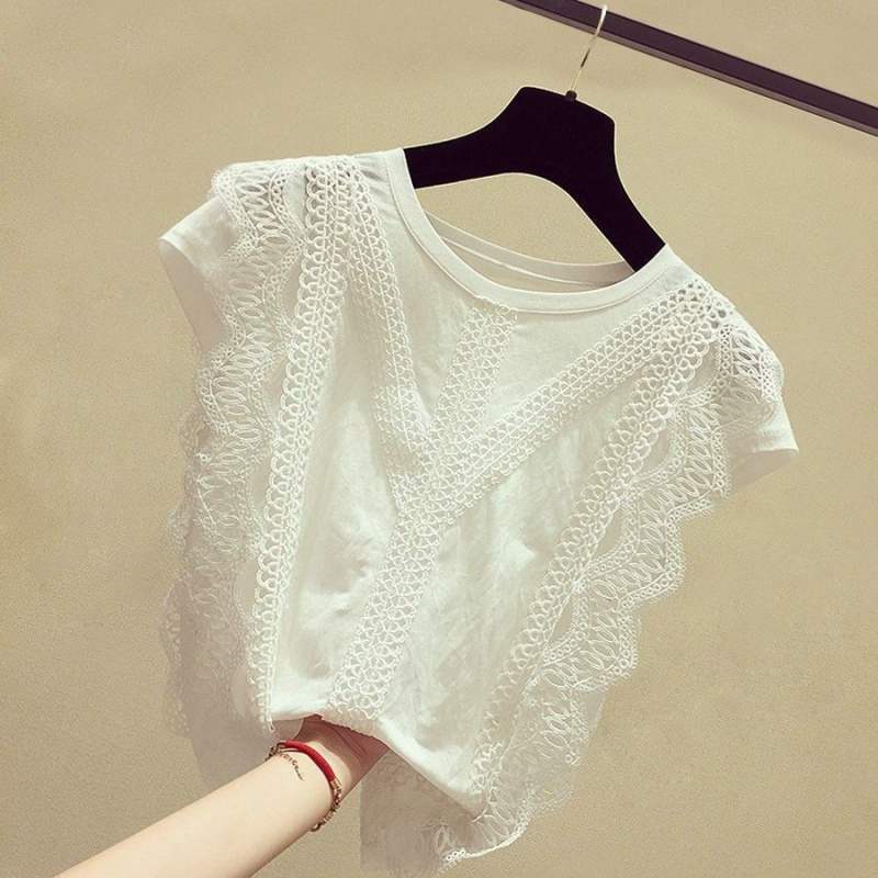 women's fashionable summer white lace short sleeve chiffon shirt