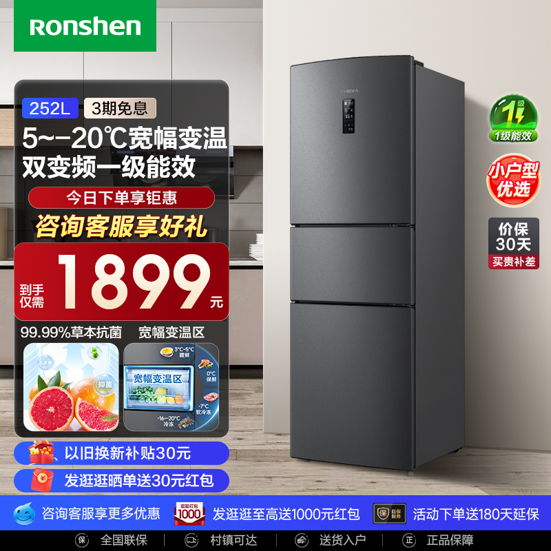 Three-door refrigerator with 252L three-open door Home-level energy efficiency variable frequency energy-saving cold and frost-free small rental refrigeratorThree-door refrigerator with 252L three-open door Home-level energy efficiency variable frequency energy-saving cold and frost-free small rental refrigeratorProvide Three-door refrigerator with 252L three-open door Home-level energy efficiency variable frequency energy-saving cold and frost-free small rental refrigerator by 容声冰箱旗舰店 at Hanning-Trading .com. Product #: 624280274925887.56In stock