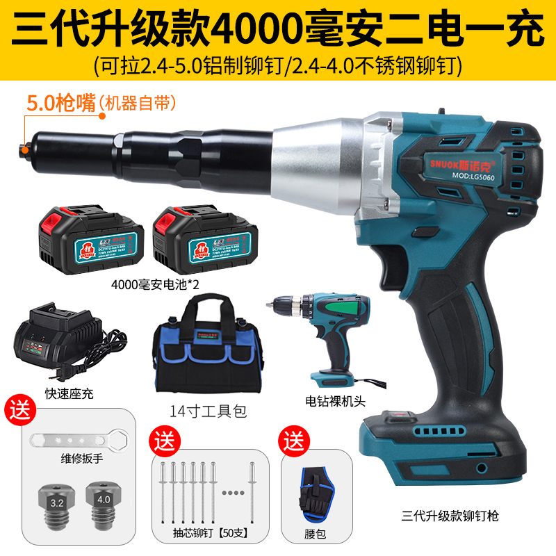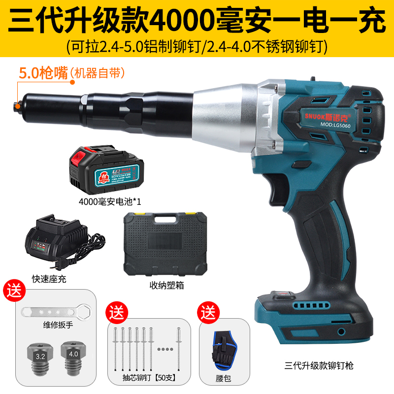 Snok lithium electroac automatic rivet gun charging industrial-grade electric pull nail gun tool core pressing rivet