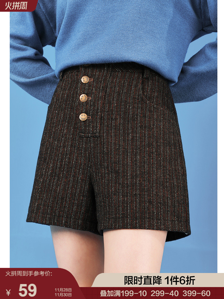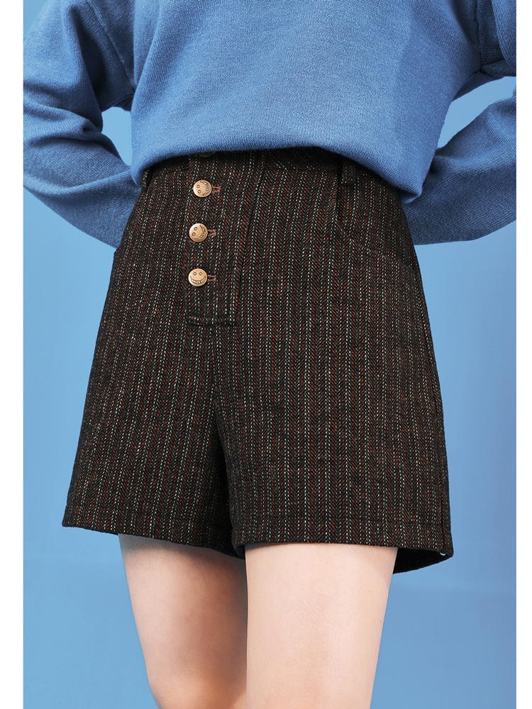women's slim woolen pants autumn winter 2022 new casual pants high waist shorts outerwear vintage all match straight pantsZoom