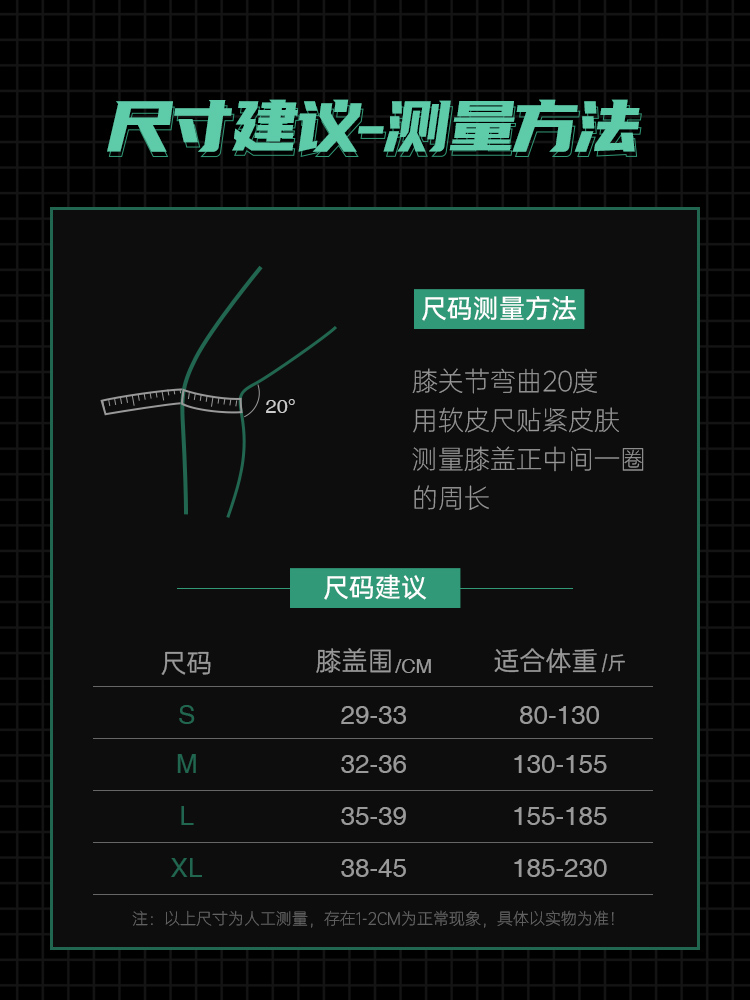 sizeS code-2 only ( knee fence: 29-33cm)( ) fit weight: 80-130 pounds ( M code-2 only ) knee fence: 33-36cm( Suitable weight: 1
