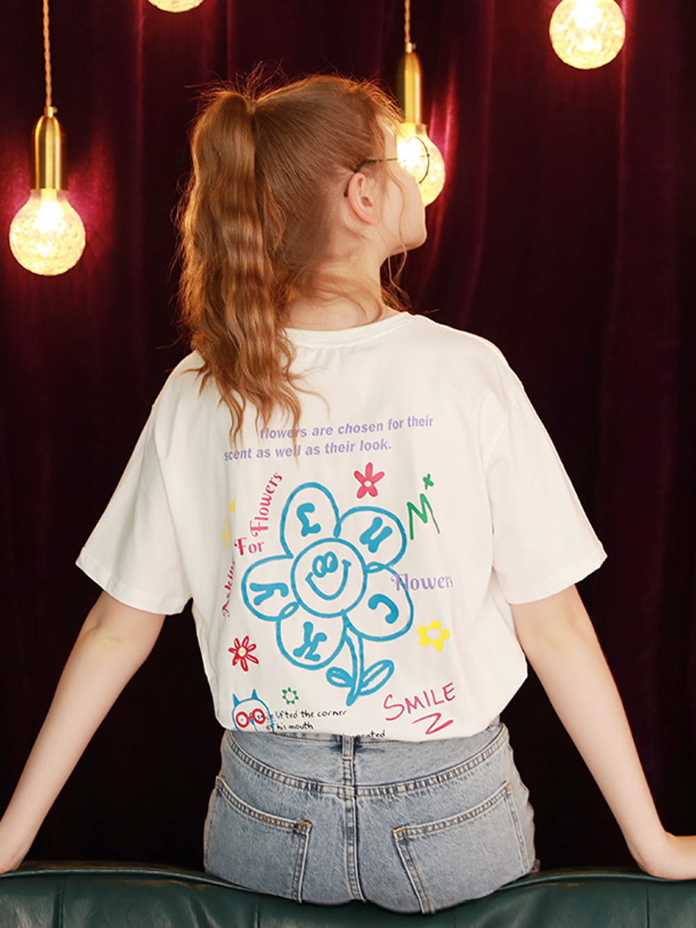 girls' new summer 2022 thin all match loose tops with printed back short sleeve t-shirtZoom