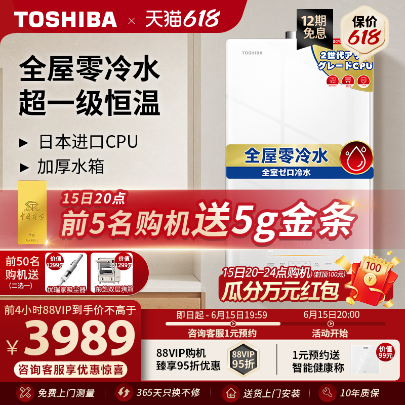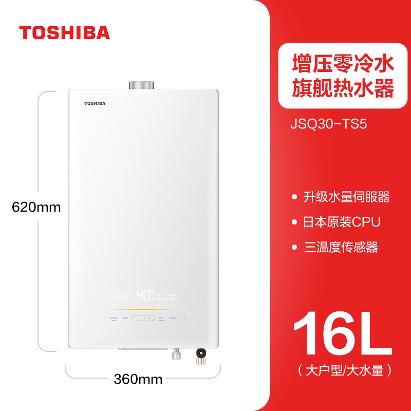 Toshiba gas water heater household natural gas 16 liters zero cold water constant temperature bath strong discharge chip TS5