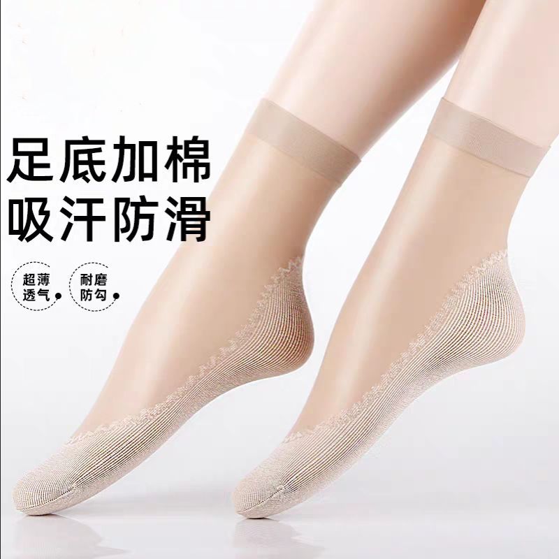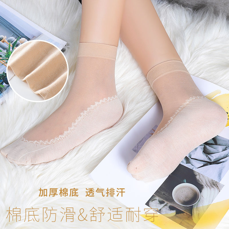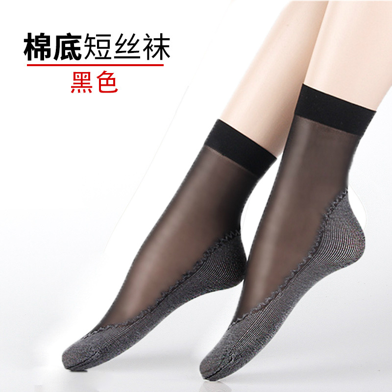 Short socks and thin socks grind-proof stockings invisible lady breathable black cotton bottom crystal socks spring and summerZoom