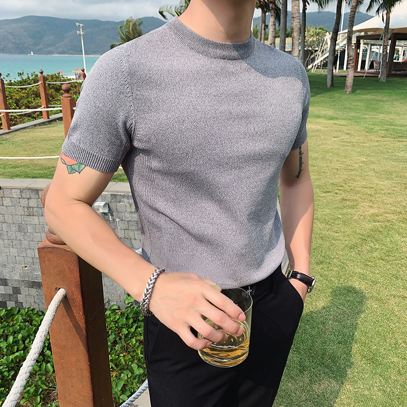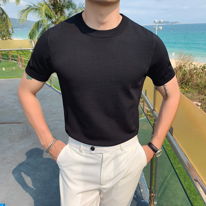 Pure cotton short-sleeved t-shirt male ice silk collar top summer Korean version self-colored half-sleeve wire knitted bottom shirt