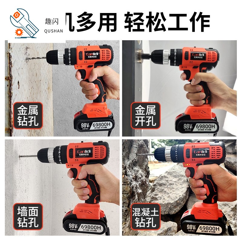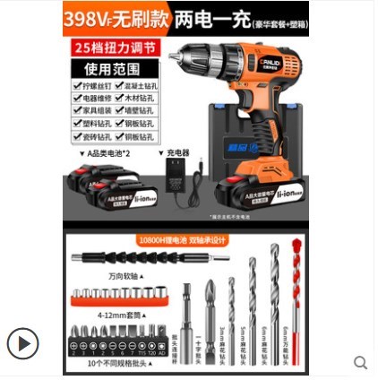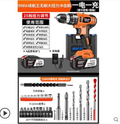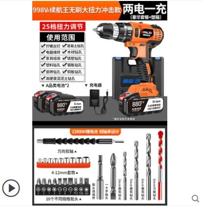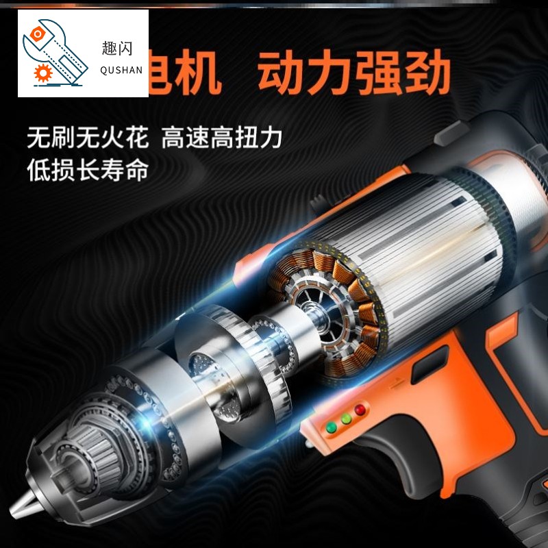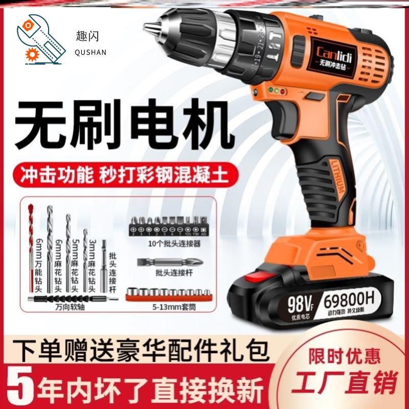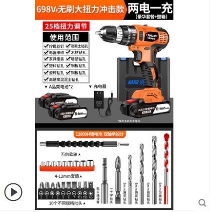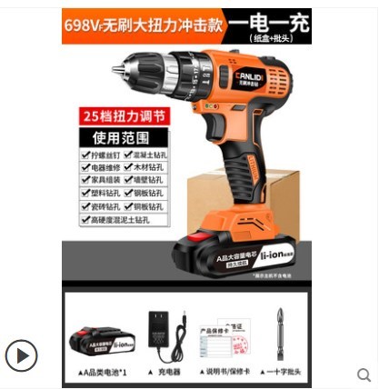 No-brush flash drill lithium pistol drilling rig impact household electric tool multifunctional electric screwdriver